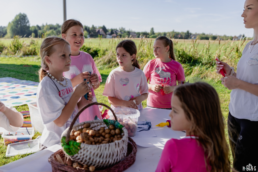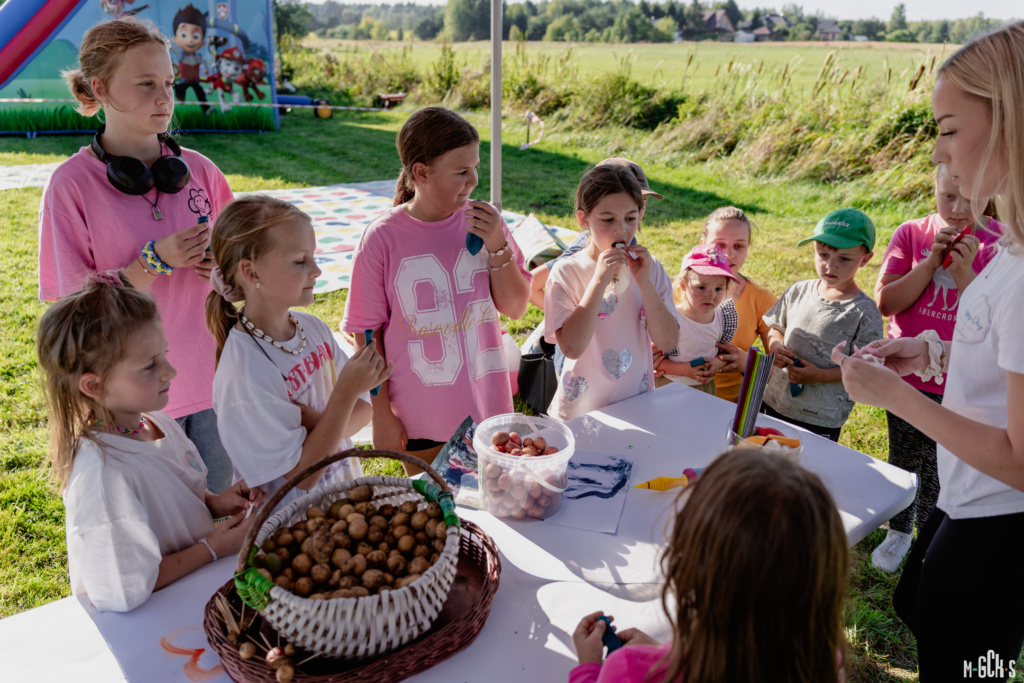 Nie zabrakło także emocjonujących konkursów. Uczestnicy – zarówno dorośli, jak i dzieci – spróbowali swoich sił w rzucie ziemniakiem do celu, przeciąganiu liny oraz konkursie na wykopywanie ziemniaków. Rywalizacja odbywała się w radosnej atmosferze, a wszystkim towarzyszyły śmiech i świetna zabawa.
